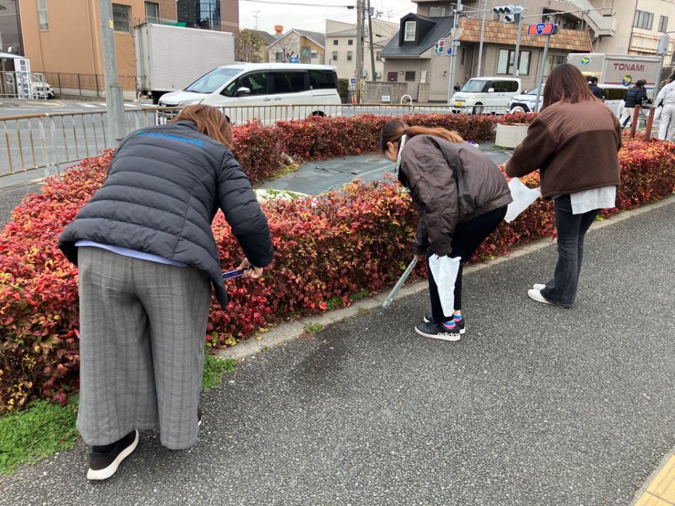 地域貢献活動の一環として、2006年より会社がある志紀町南・弓削町南3丁目周辺の清掃活動を継続しておこなっております。社員がごみ拾いや草取りなどをおこない、快適な環境づくりに取り組んでまいりました。