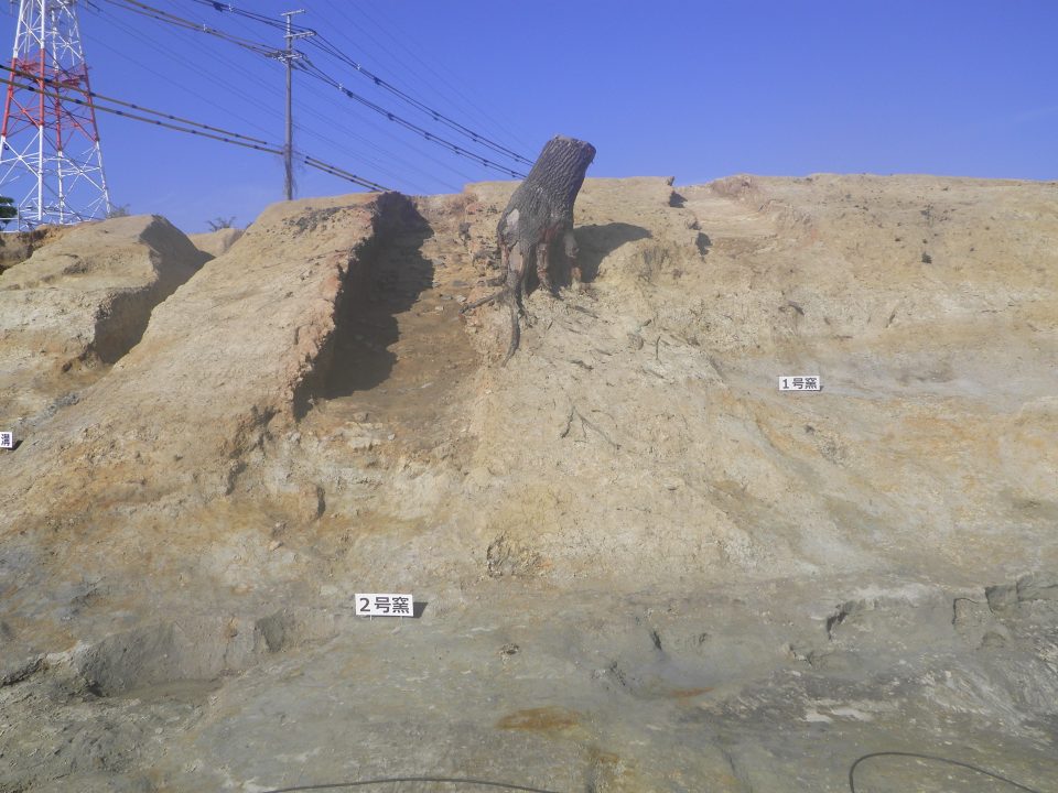今回の調査では、約1600年前に古墳時代の初期須恵器を生産していたとみられる窯跡3基が新たに見つかりました。窯は長さ5.4~10.2m、高さ0.5~1.1m、幅1.4~1.8mほどの大きさで、斜面に沿ってきれいに並んで配置されていたことがわかっています。また、焼成に失敗した須恵器を捨てたと考えられる灰原からは、大量の須恵器の破片が出土し、その形から初期須恵器であることが確認されました。
